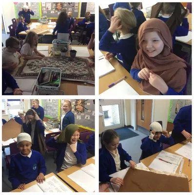 In RE this half term, Year 4 have been learning about Islam. We had a special visitor come and talk to us about her experience travelling to Mekkah- she told us all about her journey, what Muslims have to do once they are there and she even brought in some prayer mats, hijabs and taqiyahs for us to explore!
