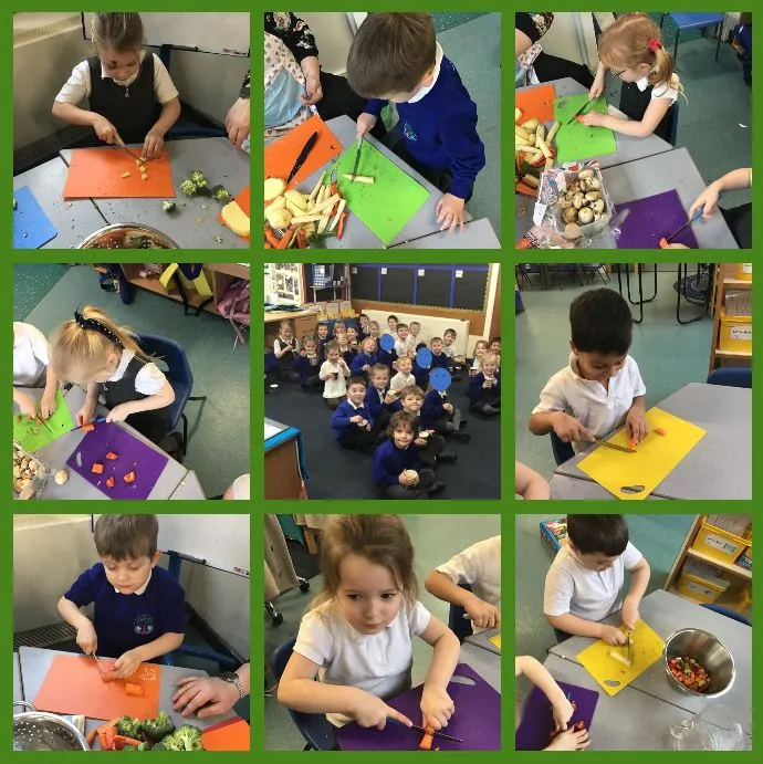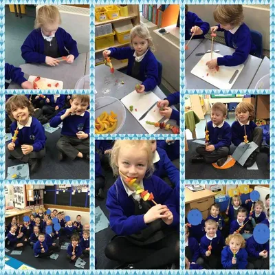 During our PSED topic Healthy Me we have been discussing how to keep ourselves healthy. The children explained that they needed to eat healthy foods to keep themselves healthy and well. We explored different food groups and came to the conclusion that fruit and vegetables were the best food for us. We then made our own fruit kebabs, we cut, assembled and skewered each one individually.