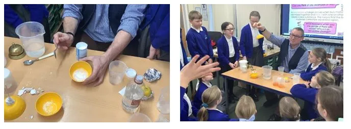Science has gone with a bang, a pop and a fizz! We explored changes in materials and discovered that some were reversible and some were not. We made plaster of paris and explored how citric acid and washing powder react to produce gases. We also saw how acetic acid (vinegar) and sodium bicarbonate can create a rocket (and make your desk smell like the chippy, according to Niamh...).